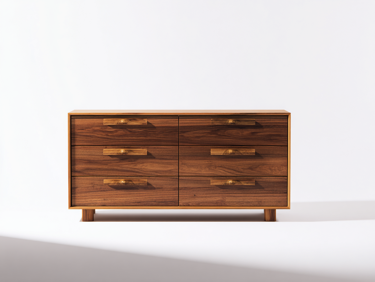 Realizzata in legno con finitura color noce, la cassettiera mette in evidenza le venature naturali del materiale. La superficie è liscia e ben rifinita, progettata per garantire stabilità e resistenza nell'uso quotidiano.
