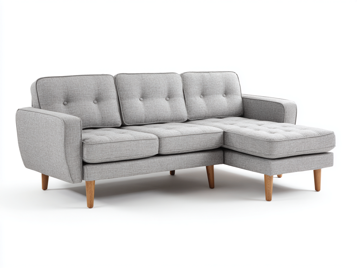 Questo divano angolare in stile moderno è progettato per arredare il soggiorno con equilibrio tra comfort e design. Le linee pulite e le proporzioni armoniose lo rendono una soluzione ideale per creare un'area relax accogliente e funzionale all'interno dello spazio living.